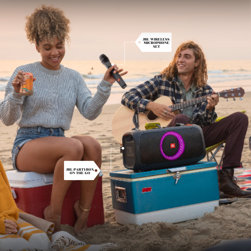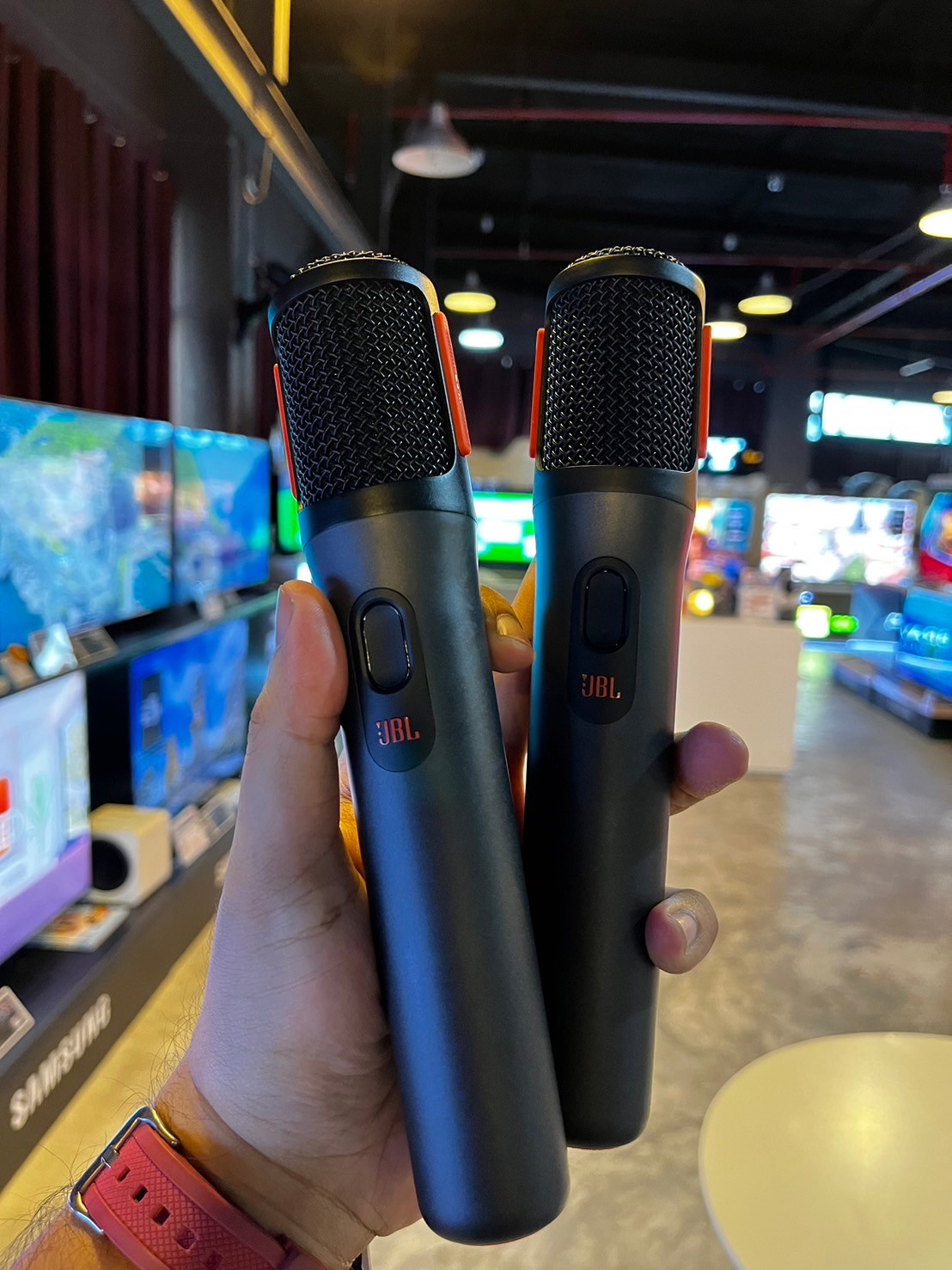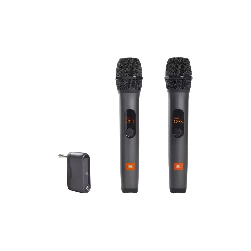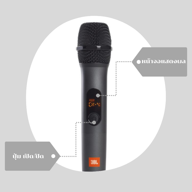 1. JBL Wireless Microphone Set ไมโครโฟนคู่ไร้สาย พร้อมส่งมอบเสียงร้องที่ชัดเจน เก็บทุกรายละเอียดเสียง เพื่อให้คุณร้องเพลงได้อย่างสนุกยิ่งขึ้น ทั้งยังใช้งานง่ายในทุกพื้นที่ ให้คุณภาพเสียงร้องระดับสูงในแบบ JBL Original Pro Sound อุปกรณ์ receiver มีแบตเตอรี่แบบชาร์จไฟได้ รับสัญญาณได้ไกลถึง 10 เมตร ใช้งานได้สะดวกเพียงเชื่อมต่อกับ wireless dual-channel receiverก็พร้อมจะปล่อยพลังเสียง ไมโครโฟนใช้เพียงแบตเตอรี่ขนาด AA สามารถใช้งานคู่กับลำโพงหรืออุปกรณ์ที่มีช่อง mic 6.35 mm. (ที่มี mic in) หรือ ดีขึ้นไปอีก หากใช้ร่วมกับลำโพง JBL Partybox Series