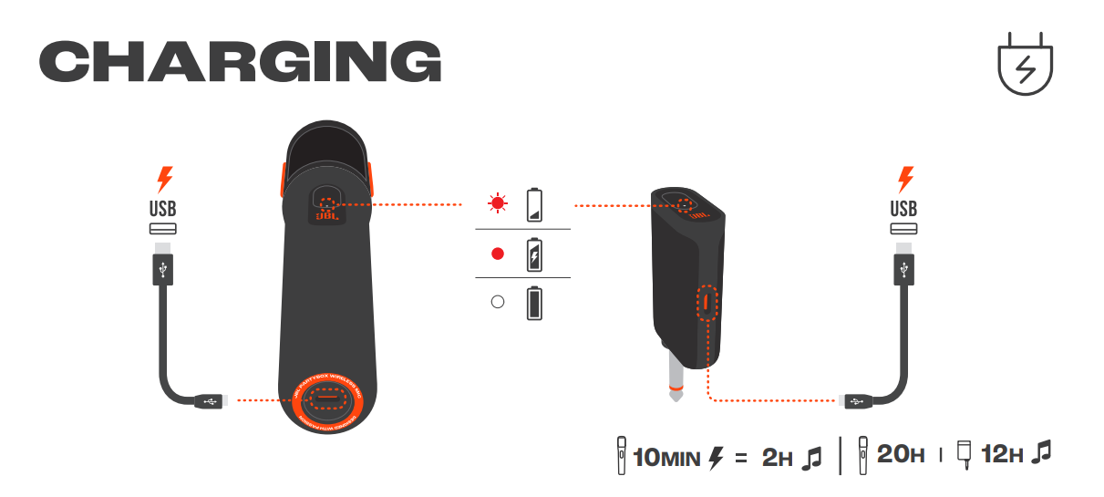 - ตัวรับสัญญาณขนาดเล็ก : ตัวรับสัญญาณมีขนาดเล็กและน้ำหนักเบา สามารถเชื่อมต่อเข้ากับลำโพงหรืออุปกรณ์เสียงอื่น ๆ ได้เหมือนเดิม ผ่านพอร์ตมาตรฐาน 6.35 mm ใช้งานได้ไกลถึง 30 เมตร มาพร้อมช่องชาร์จ USB-C