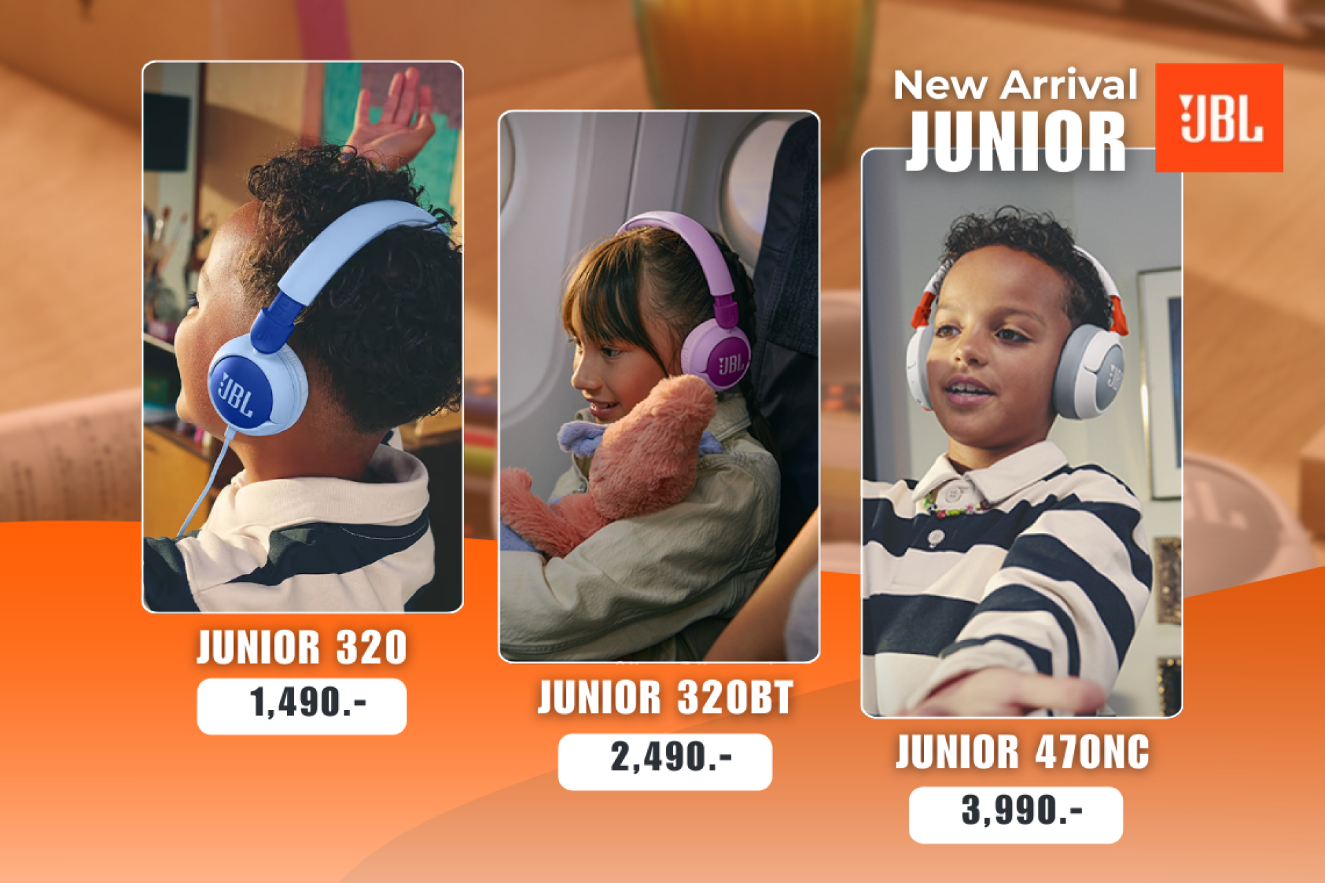 JBL Junior 320 หูฟังแบบมีสายที่ออกแบบมาเพื่อแนะนำเสียงระดับ JBL ให้กับเจเนอเรชันใหม่ โดยมีการจำกัดระดับเสียงไม่เกิน 85dB เพื่อป้องกันการฟังเสียงที่ดังเกินไปซึ่งอาจเป็นอันตรายต่อหูเด็ก ๆ หูฟัง JBL Junior 320 ออกแบบมาเพื่อเด็กโดยเฉพาะ สวมใส่สบาย มีปุ่มควบคุมขนาดใหญ่ที่ใช้งานง่ายที่แม้แต่เด็กเล็กก็ใช้ได้สะดวก พร้อมไมโครโฟนในตัวที่ช่วยให้เด็ก ๆ สามารถพูดคุยกับครอบครัว เพื่อน หรือคุณครูได้ง่าย ๆ