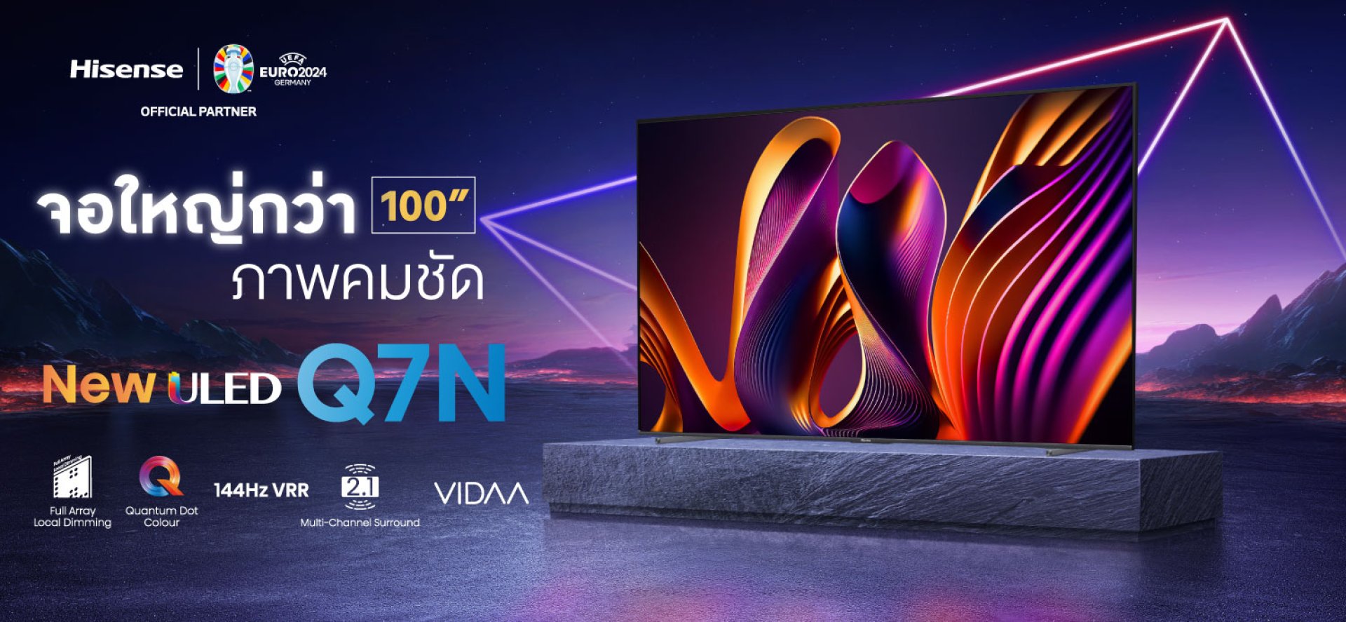 " หากคุณกำลังมองหาทีวีขนาดใหญ่ที่ตอบโจทย์ทั้งภาพ เสียง ฟีเจอร์อัจฉริยะ และราคาไม่เวอร์เกินไป Hisense QLED 100Q7N (สั่งซื้อ คลิกที่นี่) คือคำตอบที่ไม่ควรมองข้าม "