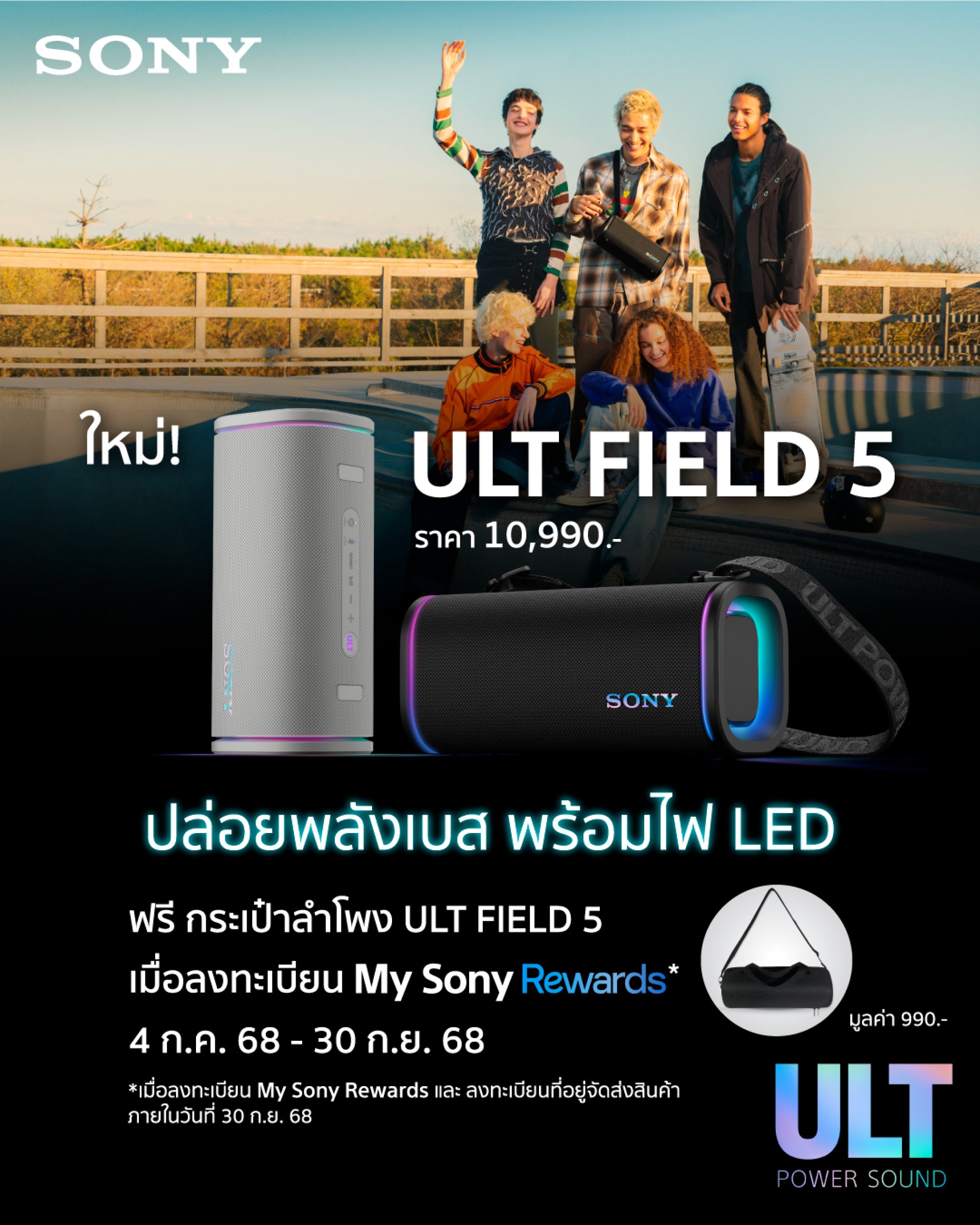 ใหม่! SONY ULT FIELD 5 (2025) ลำโพงไร้สายแบบพกพา พร้อมโปรของแถมฟรี!
