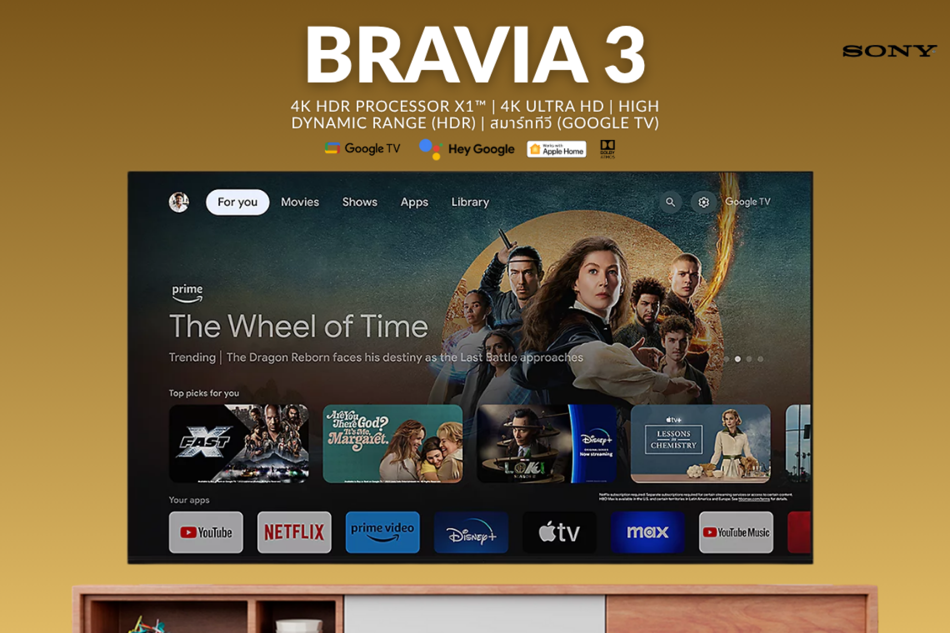 - Google TV ลื่น ใช้งานง่าย Bravia 3 มาพร้อมระบบปฏิบัติการ Google TV รุ่นใหม่ปี 2025** ที่ทั้งเสถียรและใช้งานง่ายกว่ารุ่นก่อน รองรับแอปสตรีมมิ่งชื่อดังทั้งหมด และยังมี Chromecast Built-in และ Apple Airplay 2 ส่งภาพหรือวิดีโอจากมือถือขึ้นจอได้ทันที ไม่ต้องซื้ออุปกรณ์เสริม