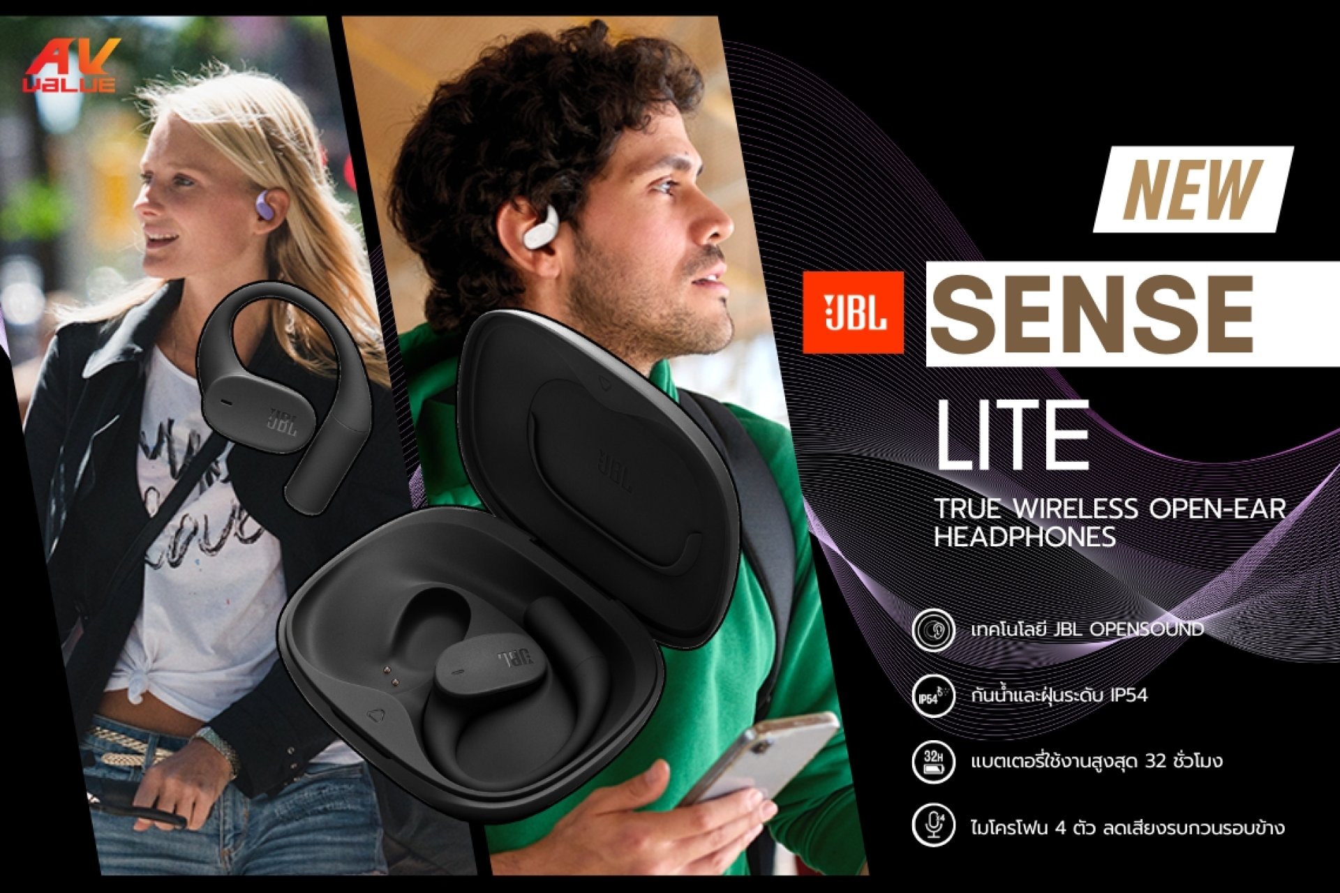 JBL Sense Lite เป็น หูฟัง ดีไซน์ที่เกี่ยวหูแบบใหม่ เบาสบายด้วยวัสดุซิลิโคนและ memory wire สวมใส่สบายตลอดทั้งวัน เทคโนโลยี OpenSound ให้เสียงละเอียดคมชัดและเบสแน่น ไมโครโฟน 4 ตัวเพื่อการสนทนาที่คมชัดลดเสียงรบกวนรอบข้าง มาตรฐานกันน้ำและฝุ่นระดับ IP54 แบตเตอรี่ใช้งานสูงสุดได้ 32 ชั่วโมง ชาร์จด่วนเพียง 10 นาที สามารถใช้งานต่อได้ถึง 3 ชั่วโมง